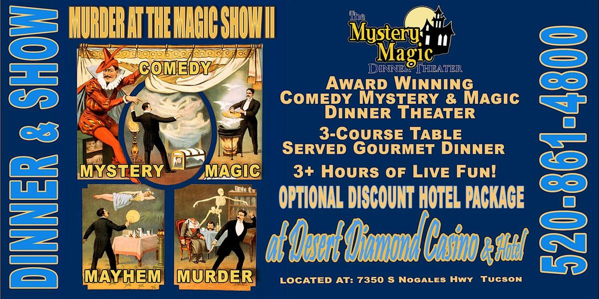 Join us at Desert Diamond Casino for the Mystery & Magic Dinner Theater's special award winning dinner & Show "M**der at the Magic Show II"About this Event