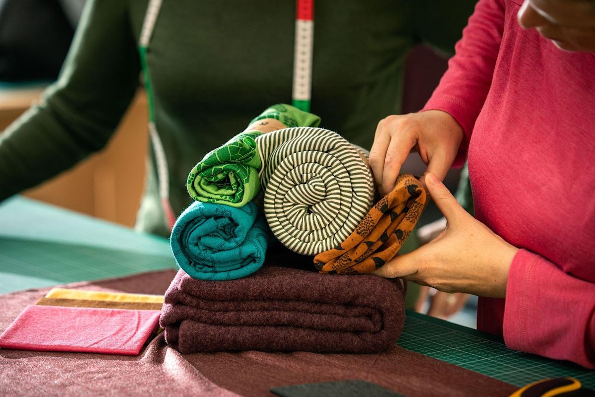 Wir haben eine kleine, aber feine Auswahl an Wolle/Seide und anderen Wollstoffen dabei, die im Kurs erworben werden können.