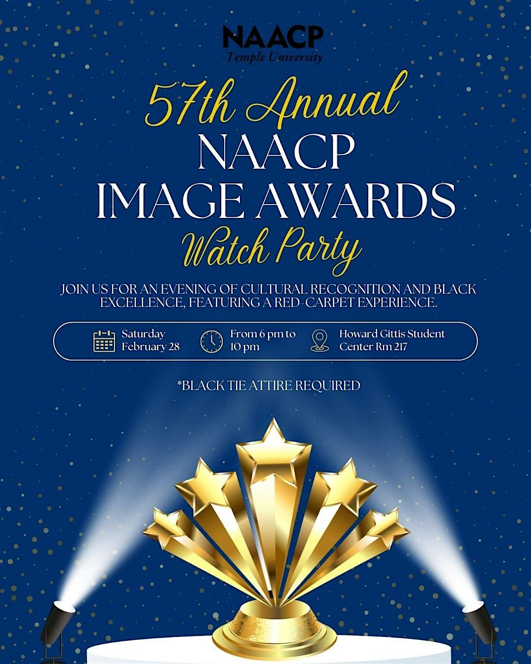 Reminder: The NAACP Image Awards are almost here. Celebrate with us at our community watch party. The Temple University NAACP College Chapter with the Philadelphia NAACP Youth Council is pleased to invite you to join us for a special evening as we host the NAACP Image Awards watch party in Philadelphia to celebrate Black Excellence: