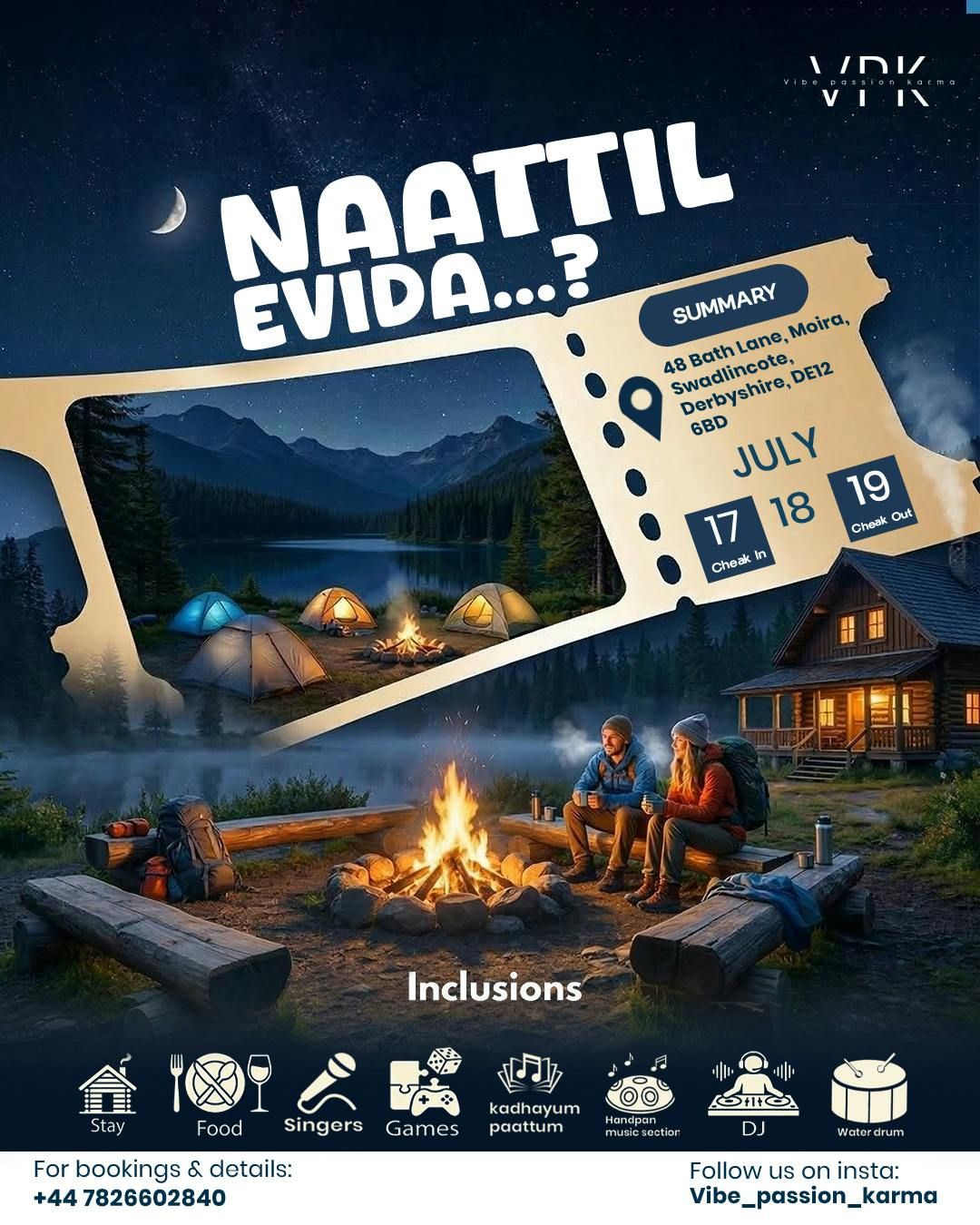 Vibe Passion Karma Limited proudly presents – Naattil EvidaGet ready for an unforgettable weekend where music, culture, food, and celebration come together! Naattil Evida is a unique gathering created especially for the Malayali community in the UK – a place where you can reconnect with the vibes of home while enjoying an electrifying party atmosphere.