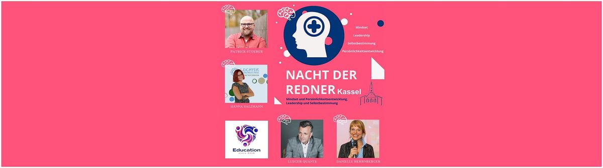 Ein Abend, vollgepackt mit Wissen und Kreativität, mit positiver Energie und dem Willen, etwas zu verändern! Das ist die „Nacht der Redner“ live in Kassel, ein Marktplatz für Ihr unentdecktes Potenzial. Ob Content-KriegerInnen, Bühnenmonster oder VorturnerInnen, eines haben alle unsere RednerInnen gemeinsam: Sie lieben Menschen und die Arbeit mit Ihnen. Unsere Redner sind ein Marktplatz der Möglichkeiten für unsere Besucher – und die Wahl wird Ihnen schwer fallen, versprochen. Wir freuen uns auf Sie!