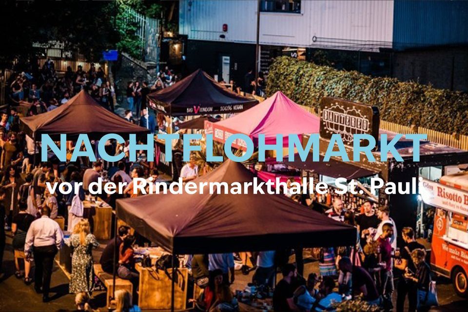 Wir sehen uns auf dem Nachtflohmarkt!Ab April verwandelt sich der große Platz vor der Rindermarkthalle St. Pauli mittwochs in einen Flohmarkt unter dem Sternenhimmel mit Food, Drinks und Live-Musik.