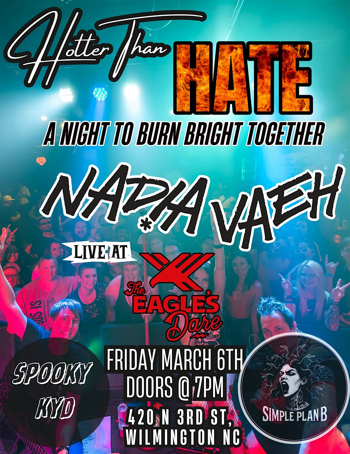 Hotter Than Hate: A Night to Burn Bright Together comes to Wilmington on Friday, March 6 at The Eagle’s Dare. Headlined by Nashville-based poptimistic rock artist Nadia Vaeh, this Pride-centered fundraiser brings together queer artists and allies for a night of music, connection, and unapologetic self-expression.
