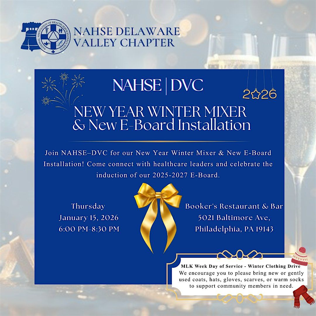 The NAHSE–Delaware Valley Chapter invites members, partners, and emerging leaders to join us for our Winter Mixer & New Executive Board Installation, a celebratory gathering designed to honor the season, strengthen connections, and welcome our incoming chapter leadership.