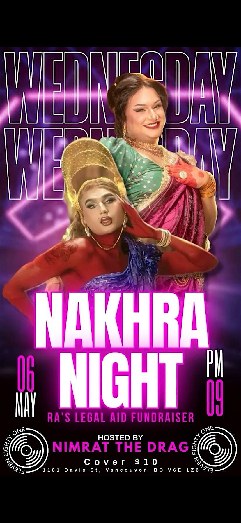 Nakhra Night: a vibrant drag fundraiser for RA’s legal aid, hosted by Nimrat the Drag—celebrating culture, performance, and community.