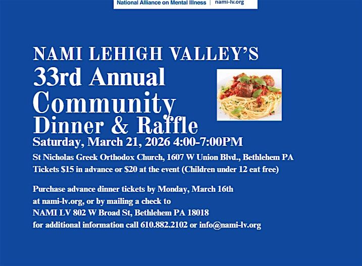 NAMI Lehigh Valley 33rd Annual Community Dinner and Raffle Fundraiser