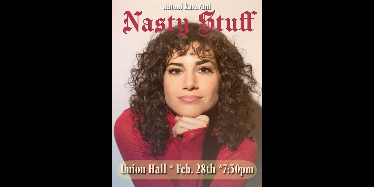 Featured on Comedy Central and NPR, NYC comedian and writer Naomi Karavani brings her razor-sharp, darkly funny stand-up to Union Hall. Her debut album Firecracker (Comedy Records) can be heard on SiriusXM, and her hour-long solo show Dominant earned rave reviews at the Edinburgh Fringe Festival. She was a writer and cast member of the political satire show Redacted Tonight for five years, and has performed at top festivals across the U.S. and abroad, including NY Comedy Fest, Brooklyn Comedy Fest, Limestone, Cape Fear, Women in Comedy, Bentzen Ball, and more.