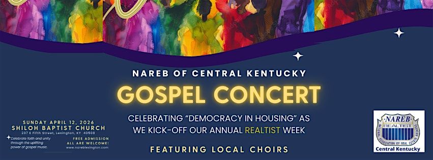 NAREB Central Kentucky invites you to kick off Realtist Week 2026 the right way — with a Gospel Concert celebrating "Democracy in Housing" and the power of community coming together.