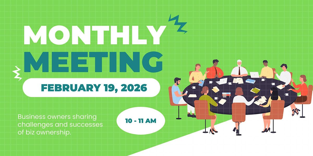 At 10:01 we'll start with round-robin introductions, then have a speaker/presenter, then move on to sharing of challenges/wins in the past month, we'll then pass around business cards, and wrap up with time to jumpstart some one-to-one conversations!