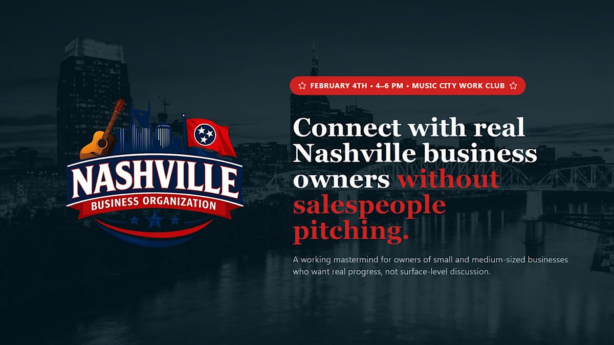 Connect with real Nashville business owners — without salespeople pitching. This is a working mastermind for owners of small and medium-sized businesses who want better answers faster, stronger decision-making, and real progress.