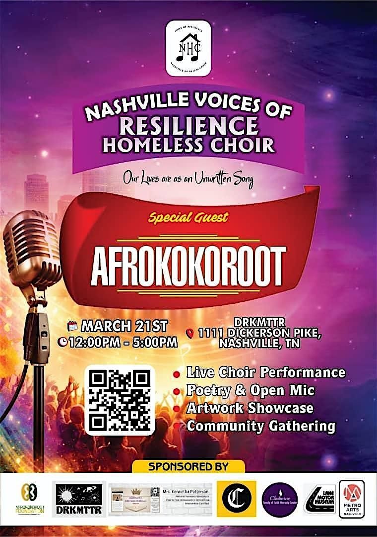 Get ready for Voices Unheard Through Music & Arts Fundraiser, an inspiring live event showcasing the incredible talents of the Nashville Homeless Choir. Join us in person to experience powerful songs and creative expressions that highlight stories often left untold. It's a night full of heartfelt performances and art that truly moves the soul. Don’t miss this unique opportunity to connect, listen, and celebrate the voices that need to be heard!