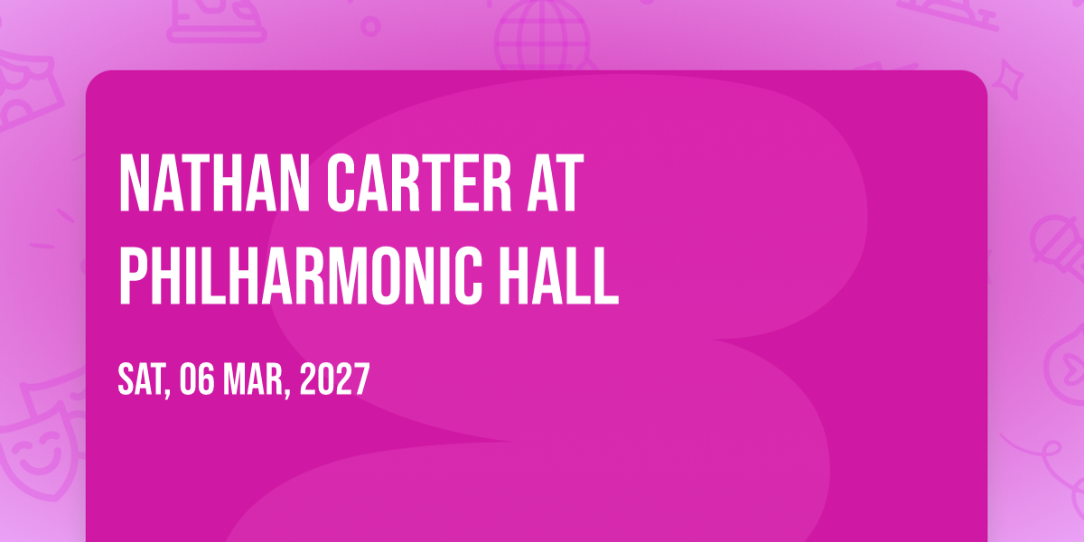 β¨ Enter a world of endless possibilities at Nathan Carter at Philharmonic Hall, where every moment tells a story! ποΈ The stunning Philharmonic Hall in vibrant Liverpool, EN transforms into a realm of wonder on March 6th, 2027 at 07:00 PM. π They have crafted an experience that goes beyond the ordinary, combining elements of surprise, delight, and pure entertainment. Every detail has been thoughtfully considered to ensure your journey with us is nothing short of extraordinary. π― Join fellow adventure seekers and memory makers in this celebration of imagination and innovation. π Reserve your spot today and be part of something truly special!