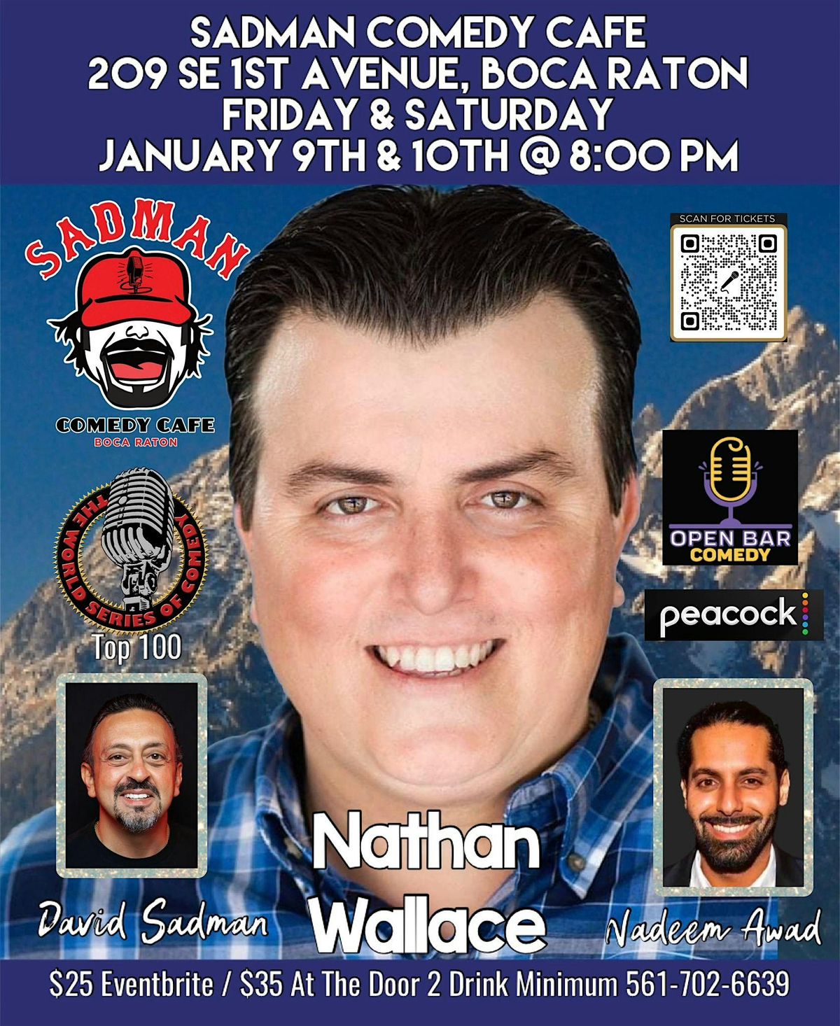 Sadman Comedy Cafe in beautiful Boca Raton is thrilled to welcome the incredibly talented comedian Nathan Wallace to our stage. Get ready to have your funny bone tickled and your spirits lifted as Nathan takes you on a wild comedy ride.