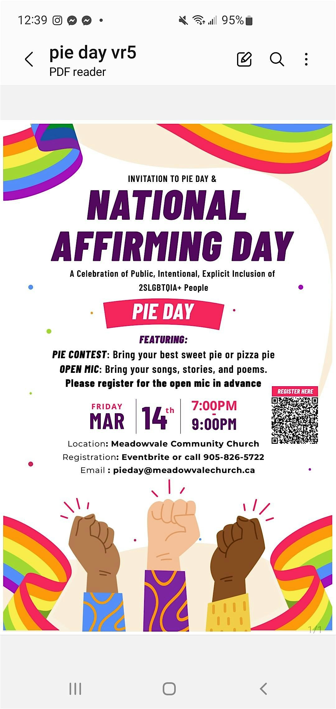 Adopted from the United Church of Canada, Meadowvale Community Church is celebrating PIE/National Affirming Day as an act of Public, Intentional and Explicit (PIE) Inclusion of LGBTQ2SIA+ people, and our commitment to continually learning how we can best serve, support, and celebrate the queer community.