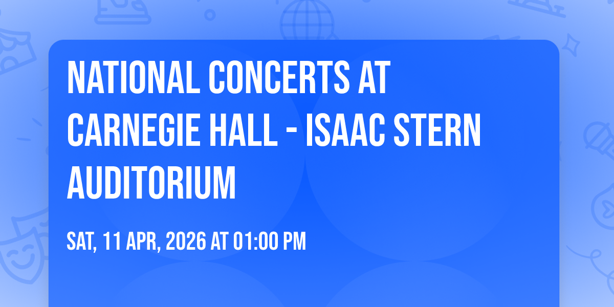β¨ Enter a world of endless possibilities at National Concerts at Carnegie Hall - Isaac Stern Auditorium, where every moment tells a story! ποΈ The stunning Carnegie Hall - Isaac Stern Auditorium in vibrant Manhattan, NY transforms into a realm of wonder on April 11th, 2026 at 01:00 PM. π They have crafted an experience that goes beyond the ordinary, combining elements of surprise, delight, and pure entertainment. Every detail has been thoughtfully considered to ensure your journey with us is nothing short of extraordinary. π― Join fellow adventure seekers and memory makers in this celebration of imagination and innovation. π Reserve your spot today and be part of something truly special!