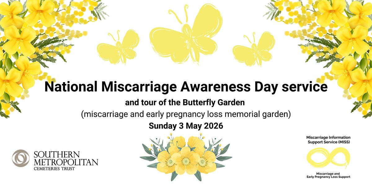 We warmly invite you to join us for the annual National Miscarriage Awareness Day service, including a guided tour of the Butterfly Garden (miscarriage and early pregnancy loss memorial garden) at Bunurong Memorial Park.