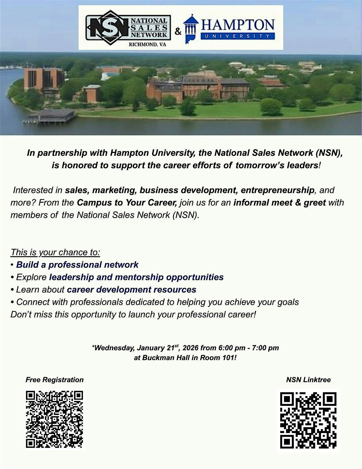 Welcome to the National Sales Network (NSN) Richmond x Hampton University Meet & Greet!