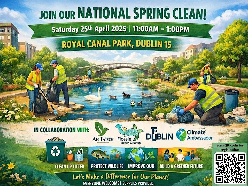 A national spring clean will take place at the Royal Canal Park, Dublin 15 on Saturday 25th April 2025 from 11AM to 1PM