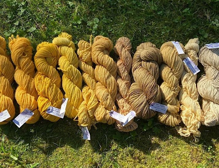 Golds, rusts, and browns will be created with the natural color from foraged black walnuts and onion skins. We will make two dye baths and explore color variations with submersion dye. Yarn will be provided, but bring your own if you have!