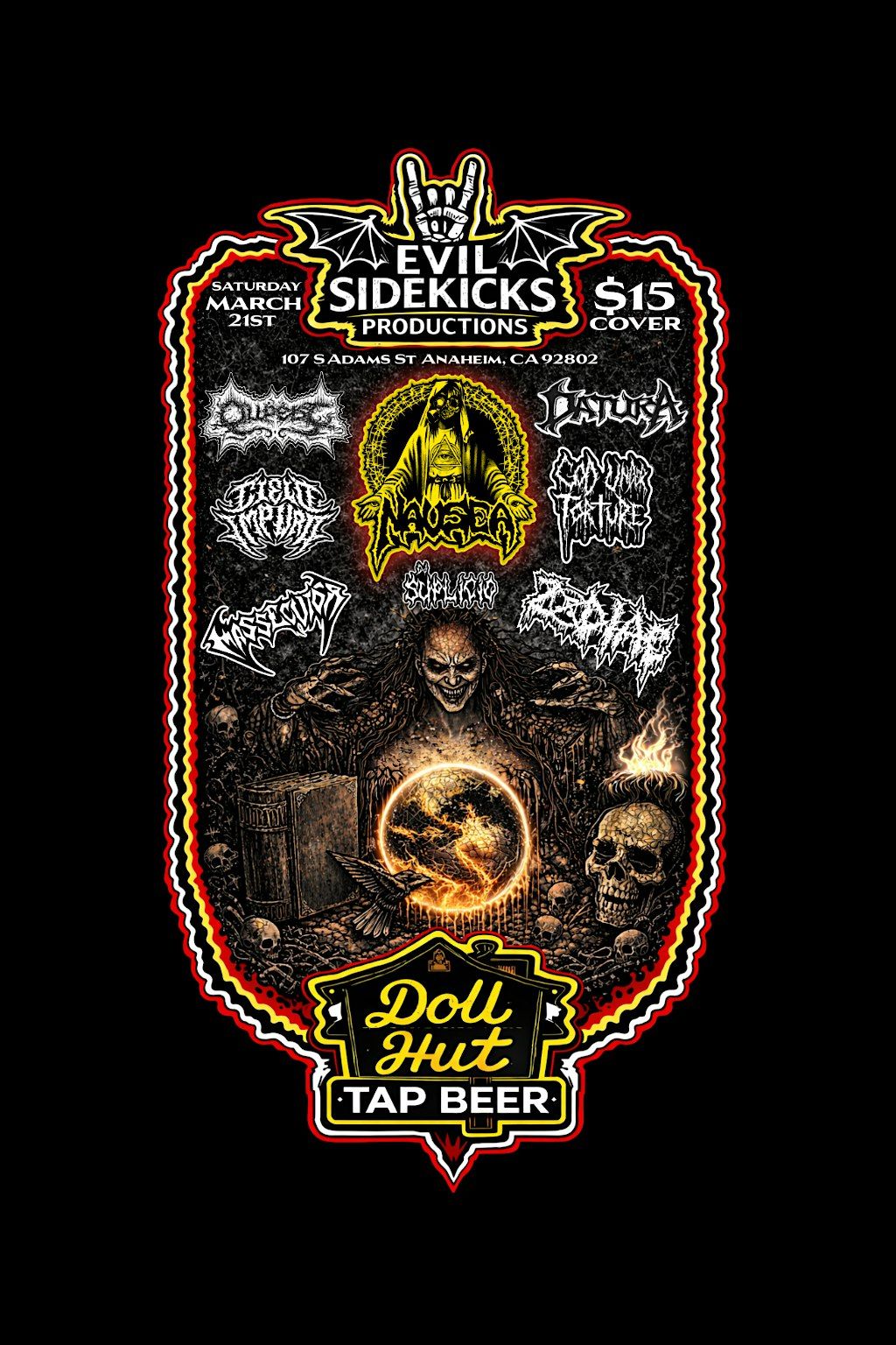 NAUSEA LA Perforing live In Anaheim California at Doll Hut Saturday March 21st $15 cover limited tickets available for space, this event will sell out so hurry & purchase limited tickets.