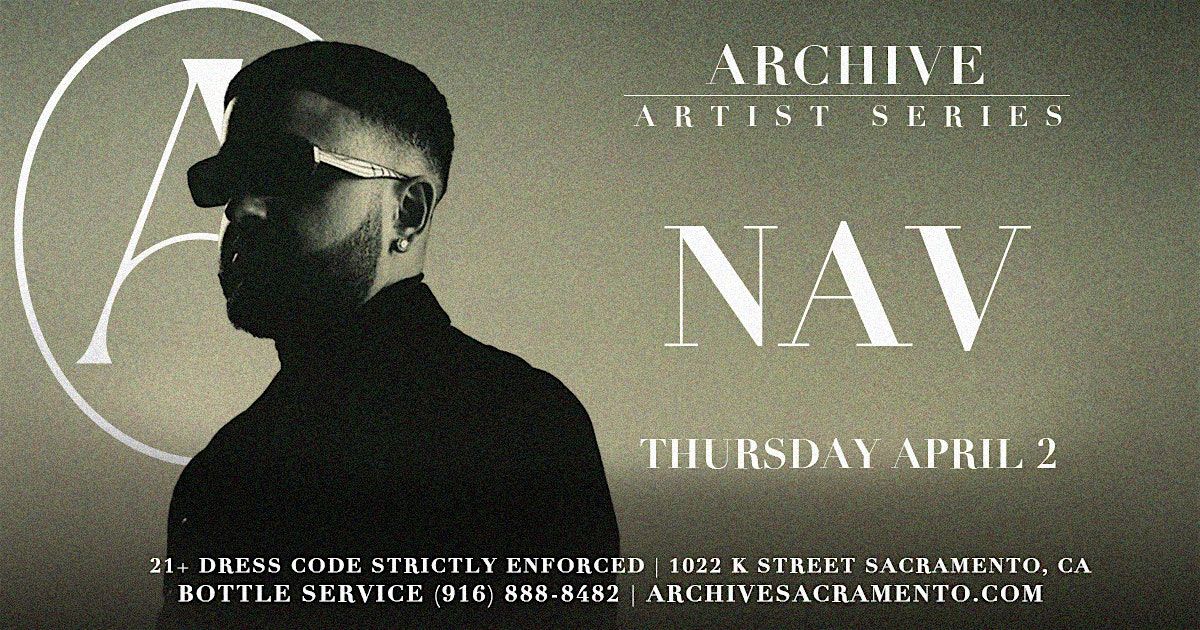 NAV makes his debut at Archive Nightclub! Join us on Thursday, April 2nd for Archive Artist Series hosted by the one and only, NAV! Also featuring DJ Shabazz!