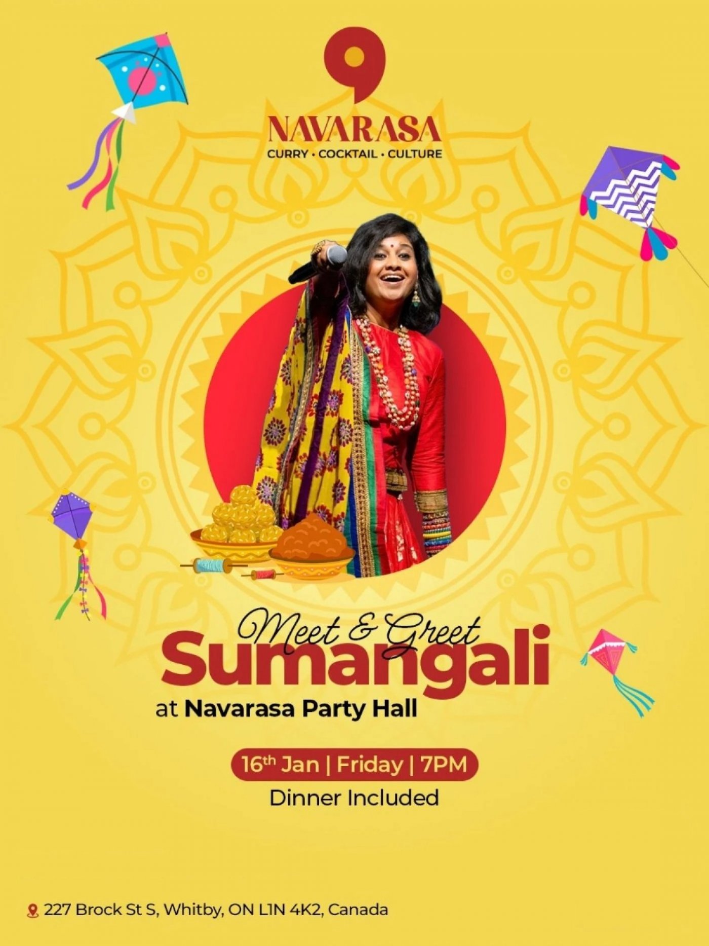 Be part of an unforgettable cultural evening with Sumangali, one of the finest and most celebrated singers, known for her soulful voice, timeless renditions, and deep roots in Indian classical and film music. This exclusive meet & greet offers a rare opportunity to experience her grace, warmth, and musical journey up close.