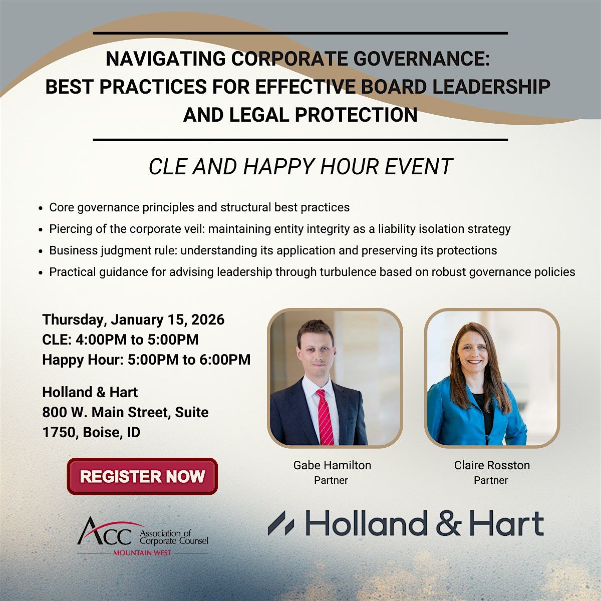 Navigating Corporate Governance, CLE and Happy Hour Event