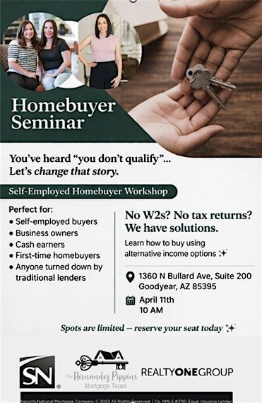 Join us on April 11, 2026 at 10:00 AM (MST) at 1360 N Bullard Ave ste 200 for a laid-back session all about homeownership tips tailored for the self-employed. We’ll cover smart strategies to help you succeed in your journey to owning a home without the usual headaches. Perfect for freelancers, entrepreneurs, and anyone running their own show. Don’t miss out on this friendly, info-packed event!