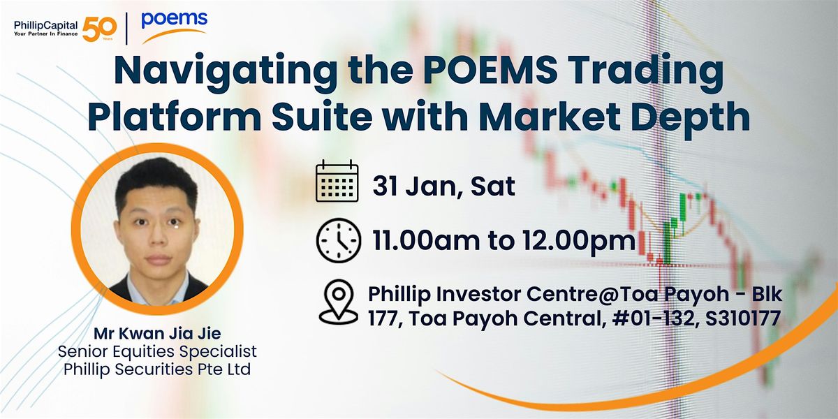 Join us at this seminar on 31 Jan, Sat at 11.00am, where Mr. Kwan Jia Jie, Senior Equities Specialist at Phillip Securities,will explore POEMS’ user-friendly features, advanced tools, and real-time market data. From stock trading to derivatives, this session will equip you with the knowledge to optimise your trading experience.