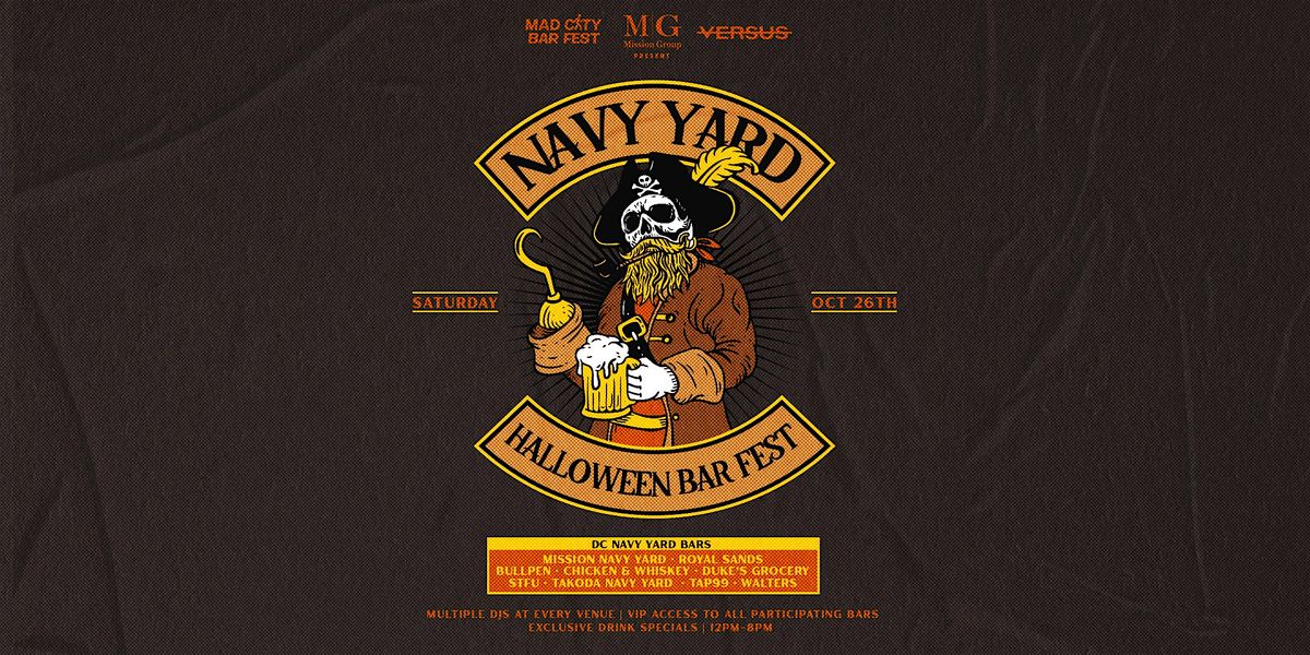 Mission, Versus, & Mad City Bar Fest Present: The Navy Yard Halloween Bar Fest. Join us at some of Navy Yard’s most popular bars/clubs!Check in to the bar you purchased a ticket to from 12-3pm, and receive a wristband that grants you access to all participating bars & drink specials! The Bar Fest is from 12pm - 8pm. You also will receive a pair of jack-o-lantern sunglasses (while supplies last!)Your wristband will provide access to the following bars: