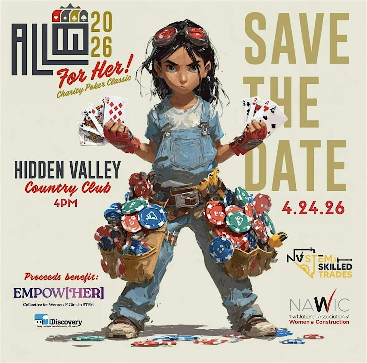 Join NV STEM for Skilled Trades and the Sierra Nevada Chapter of NAWIC at Hidden Valley Country Club on April 24 at 4:00pm for a skilled trades-themed poker tournament benefiting The Discovery’s EMPOW[HER] Collective and the start up of our local NAWIC chapter.