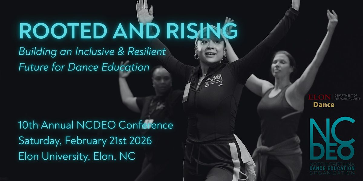 Welcome to the NCDEO 2026 Conference, Rooted and Rising: Building an Inclusive and Resilient Future for Dance Education, Join us for a day filled with creativity, learning, and inspiration at Elon University. Get ready to explore new ideas, connect with fellow dance enthusiasts, and discover innovative ways to enhance your dance practice. The event will take place on Saturday, Feb 22, 2026 starting at 08:30 AM. Don't miss out on this exciting opportunity to expand your horizons and ignite your passion for dance!