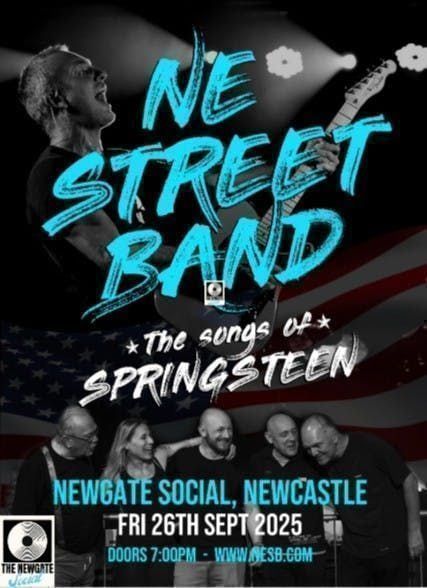 The only dedicated Springsteen band from the North EastExpect a fun filled, audience engaging 2.5 hour show of all things Bruce & The E-Street Band. As well as playing all the ‘classics’ the band also covers songs from Bruce’s solo albums & collaborations, including songs from ‘The Seeger Sessions’ shows which are now becoming an integral part of the bands set.**In early 2021 their version of Blinded by the Light was voted, in an online competition by professional judges, as the 7th best Alternate Springsteen cover in the world, which we think is pretty impressive. If you add in some unique acoustic performances & fan favourites then you get the idea what their shows are about.Some of the reviews of the band are just fantastic & here’s what people & venues are saying about them. “Cracking nights entertainment from NE Street Band from start to finish. Obviously love what they do & it shows with the energy created at their gigs”“Had the crowd clapping & singing throughout & even non-Boss fans would love to see these guys!”“One of the best bands ever to play at our venue ““If you’re looking for a band to ramp up the atmosphere then these are your guys !!!!”“The best Springsteen band I’ve ever seen, energy by the truckload ““A must see band for any Springsteen fan” “This band just HAS to be seen and most definitely HEARD!” “One of the tightest bands I’ve ever seen”“Go & see these guys (and Louise who is outrageously talented) you’ll feel better when you left than when you arrived, that’s guaranteed “Please check out the YouTube link below and check the bands fb page & their website www.NESB.co.ukDisclaimer: