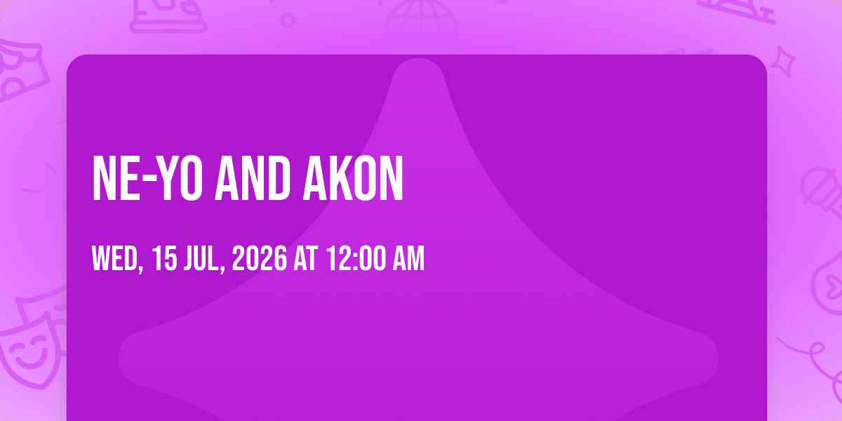 π Location: 27.9932, -82.3651β¨ Experience the magic of Ne-Yo and Akon, where moments become memories that last a lifetime! ποΈ The iconic MidFlorida Credit Union Amphitheatre in Tampa, FL sets the perfect stage for an unforgettable celebration on July 15th, 2026 at 12:00 AM. π It's been a curated experience that brings together the best of entertainment and innovation, creating an atmosphere of wonder and excitement. From the moment you arrive, you'll be immersed in a world where the ordinary transforms into the extraordinary. π Book early to secure your place in what promises to be an event that will be talked about for years to come!