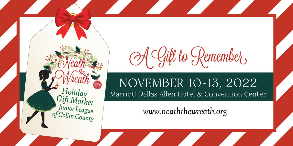 Over 13,000 shoppers will join the Junior League of Collin County's ‘Neath the Wreath Holiday Market for the 27th year at the Marriott Dallas Allen Hotel & Convention Center from November 10-13th. This four-day long fundraiser features the best in holiday and home décor, ladies clothing and accessories, gifts, jewelry, children’s items, gourmet food and more. With over 135 merchants to explore, shoppers will be excited to shop with long-time ‘Neath the Wreath merchants in addition to new merchants from all over the nation. Shop for a Gift to Remember this holiday season!