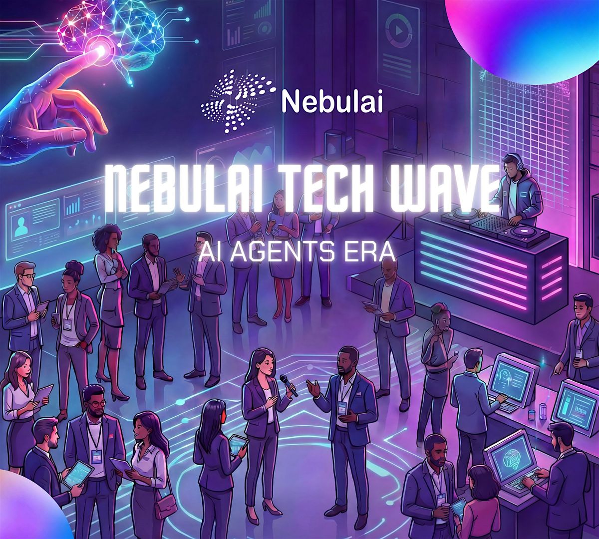 Nebulai Tech Wave is an immersive evening exploring the rise of AI Agents and the new Human + AI era.