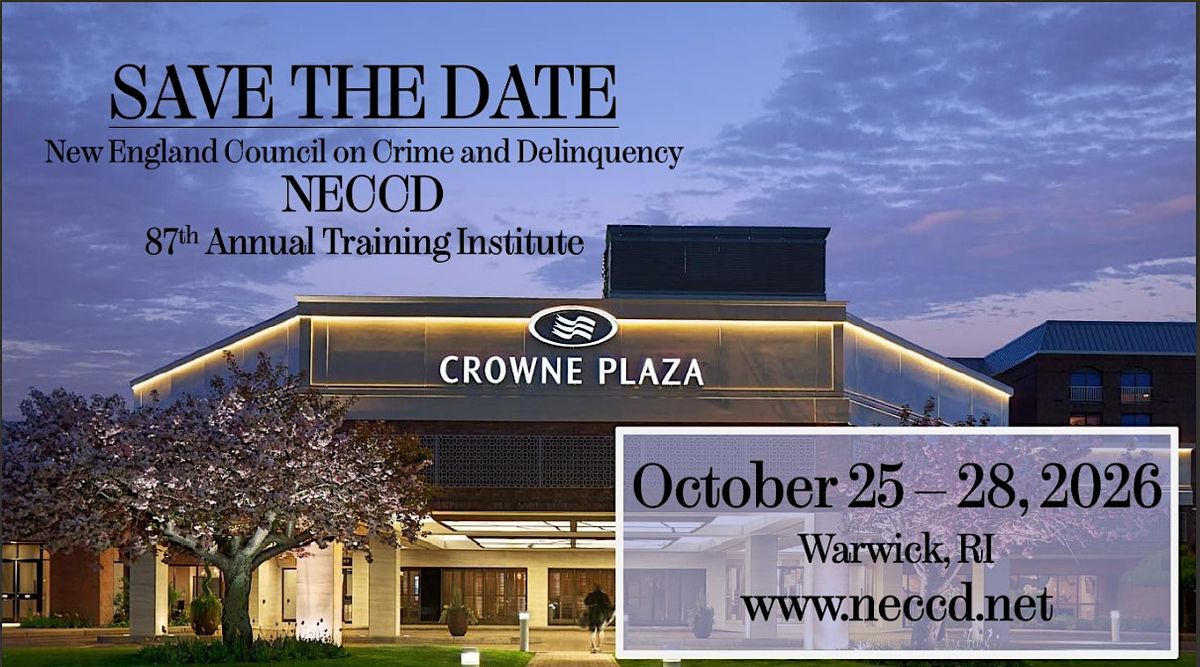 The New England Council on Crime and Delinquency (NECCD) invites you to join us at the Crowne Plaza in Warwick, RI, for our 87th Annual Training Institute. This year’s program moves beyond abstract theory. We are focusing specifically on Actionable Skills—the kind of tangible, evidence-based strategies that justice and social work professionals can bring back to the field and use immediately.