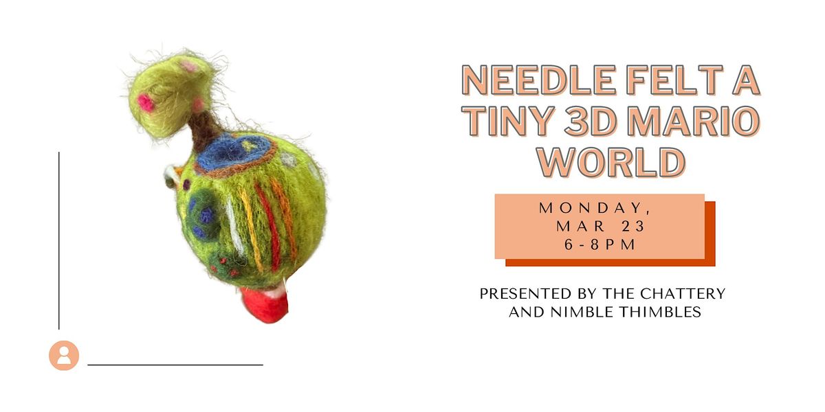 Step into the magical world of needle felting and create your own little 3D scene! In this beginner-friendly class, we’ll use a simple dryer wool ball as our base to build a miniature world (think Mario World) with cozy cottages, trees, mushrooms, or even whimsical landscapes. You’ll learn needle felting techniques to shape, layer, and add details, bringing your tiny creation to life. All materials are included, and you’ll go home with a finished felted world and the skills to keep exploring this fun craft.