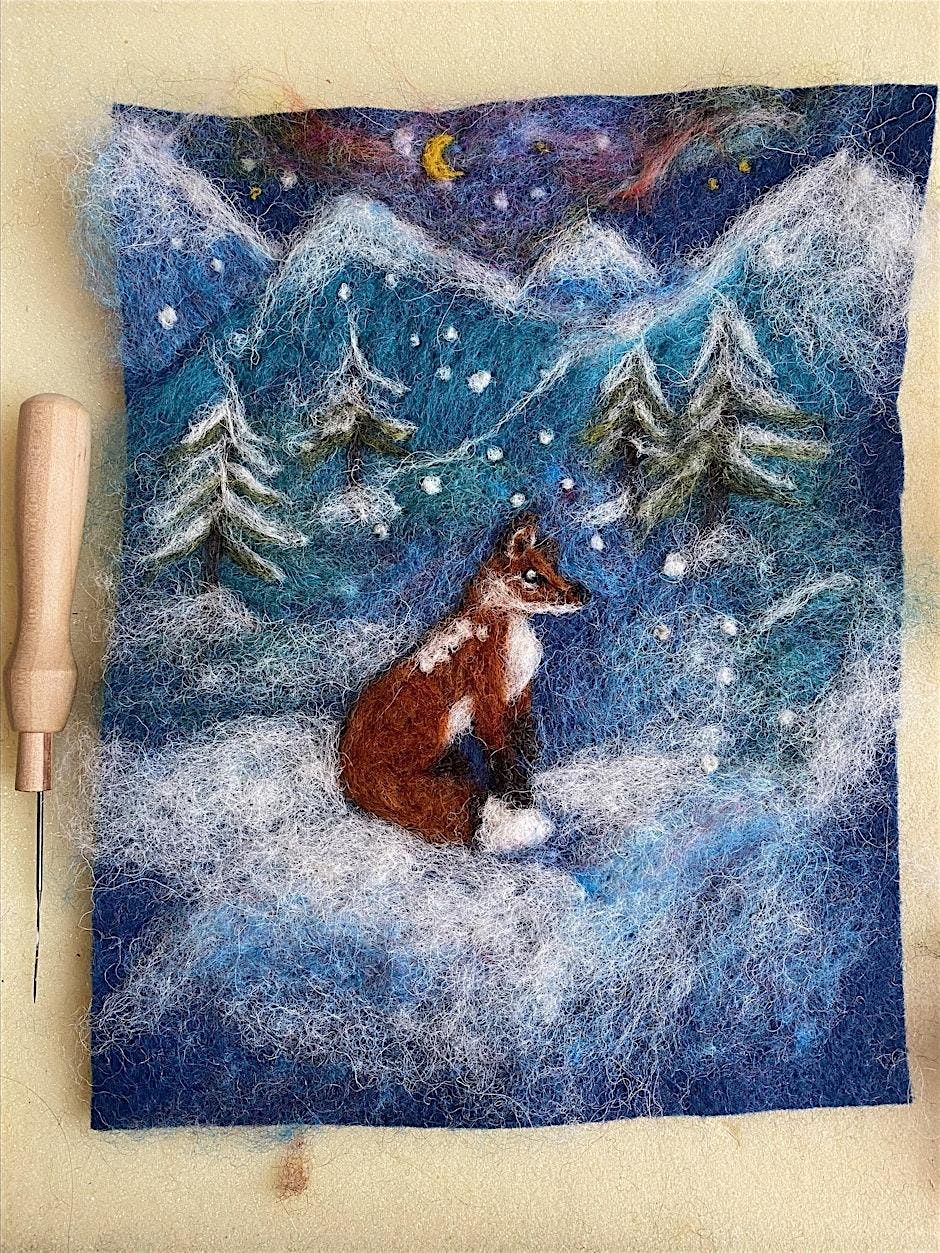 Join textile artist Alisha Hayes of Badger & Bumblebee in making your very own whimsical felt artwork. In this workshop we will be flat felting foxes in winter landscapes. It’s complete beginners friendly.