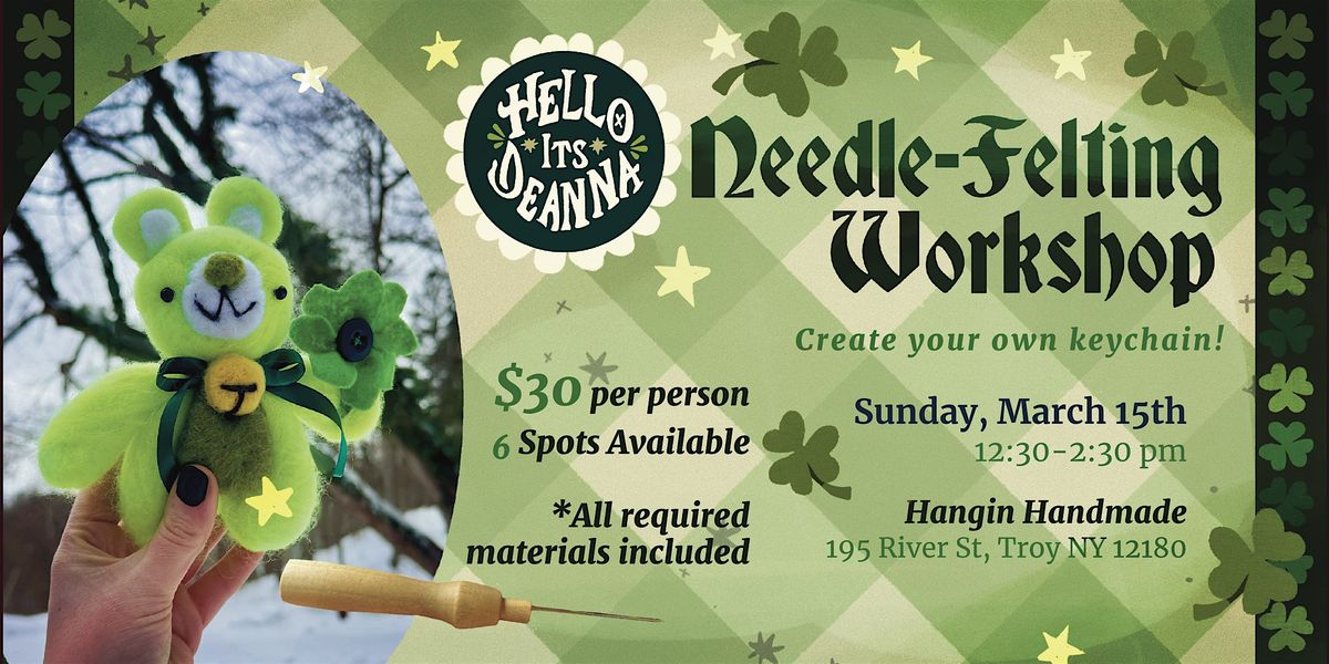 Come join us for a Needle-Felting Workshop located at Hangin’ Handmade Vendor Boutique. Learn the art of needle-felting and create your own felt friend! Keychain optional.