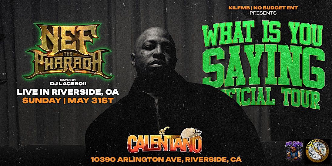 Bay Area artist Nef the Pharaoh is bringing his "What is You Saying" Tour to Riverside on May 31st!About this Event