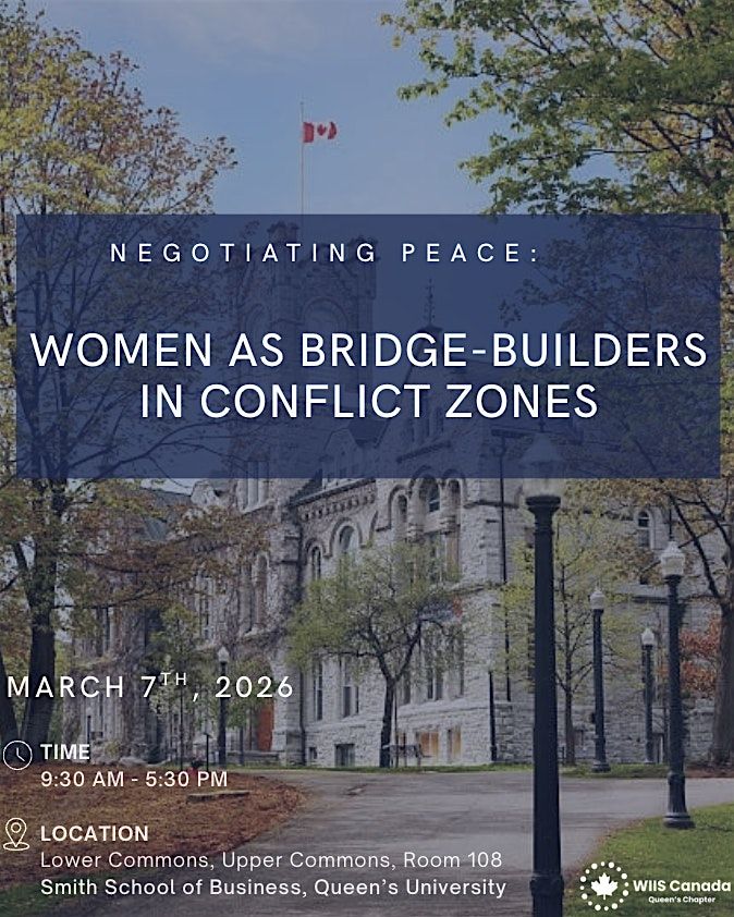 The WIIS-Queen’s Annual Conference on March 7, 2025 marks a major milestone: the 10-year anniversary of the WIIS Queen’s chapter. Hosted at the Smith School of Business, this year’s conference,“Negotiating Peace: Women as Bridge-Builders in Conflict Zones,” will bring together scholars, practitioners, journalists, and students to reflect on a decade of advancing Women, Peace and Security at Queen’s.