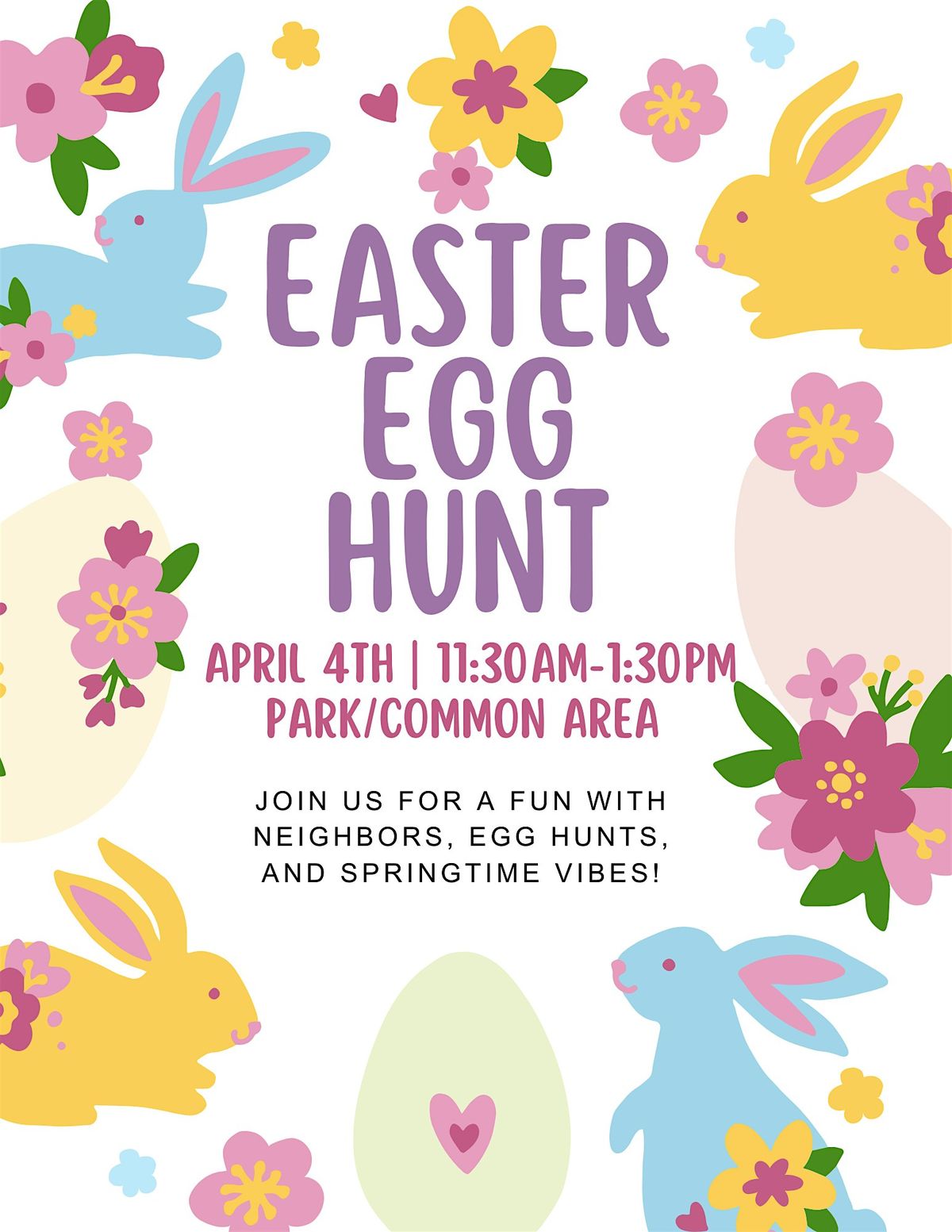 Join us for a fun morning with neighbors, egg hunts, and springtime vibes!About this Event