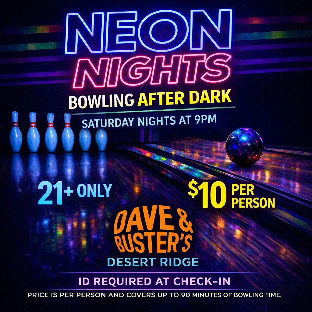Turn down the lights and turn up the fun! Join us for Neon Nights at Dave & Buster’s Desert Ridge and experience a night out on the lanes — glowing lights, vibrant vibes, and late-night energy.