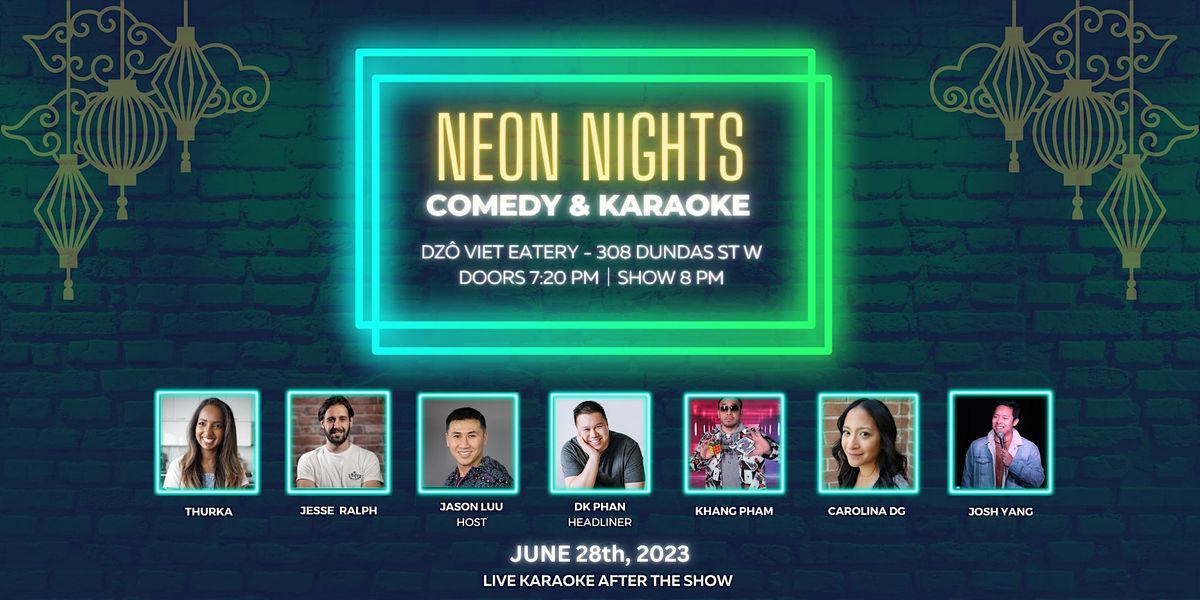 Neon Nights Comedy & Karaoke is a live comedy show followed by free karaoke for all guests and attendees! Come watch a line-up of Toronto's best comedians while enjoying the best Vietnamese fusion dishes and cocktails by DZO Viet Eatery! After the show, stick around for the live karaoke in the main room surrounded by the neon lights of a Vietnamese night market atmosphere!