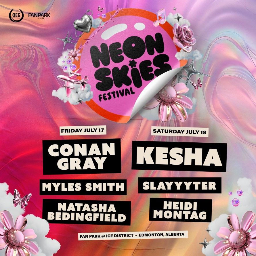 π Welcome to Neon Skies Festival: Conan Gray Myles Smith & Natasha Bedingfield, where the impossible becomes possible and dreams take flight! ποΈ Join us at Fan Park at Ice District in the heart of Edmonton, AB for an event that will redefine your expectations. π