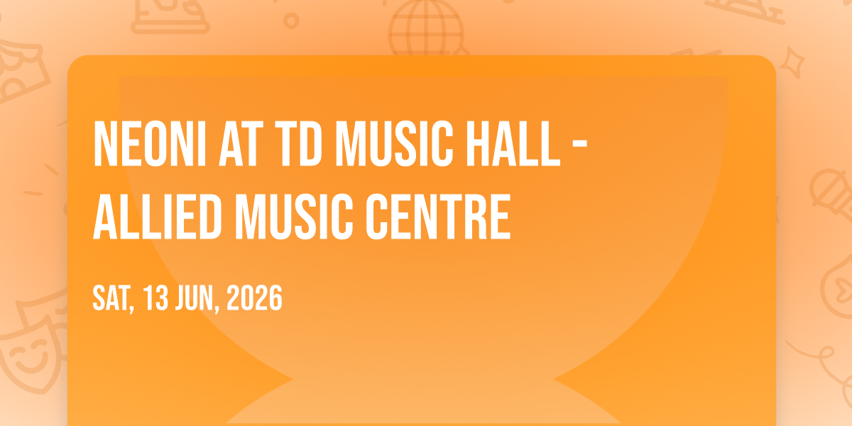 🎉 Welcome to Neoni at TD Music Hall - Allied Music Centre, where the impossible becomes possible and dreams take flight! 🏛️ Join us at TD Music Hall - Allied Music Centre in the heart of Toronto, ON for an event that will redefine your expectations. 📅 On June 13th, 2026 at 08:00 PM, witness the transformation of space and time into something truly magical. ✨ It's a curated experience combining the best of innovation, entertainment, and community spirit, creating moments that will be remembered for years to come. Whether you're a first-time visitor or a seasoned enthusiast, prepare to be amazed. 🎊 Book now to ensure your place in this unforgettable experience!