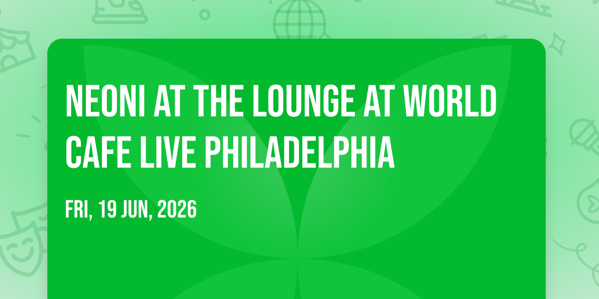 ✨ Embark on an extraordinary journey at Neoni at The Lounge at World Cafe Live Philadelphia, where every moment promises to be unforgettable! 🌟 Imagine of transforming The Lounge at World Cafe Live Philadelphia in the heart of Philadelphia, PA into a realm of endless possibilities. 📅 Join us on June 19th, 2026 at 08:00 PM for an experience that will challenge your imagination and exceed your expectations. 🎯 This carefully curated event combines the finest elements of entertainment, innovation, and community spirit. Whether you're an adventure seeker, culture enthusiast, or someone looking for unique experiences, this event offers something special for everyone. 🎊 Don't miss this chance to be part of something extraordinary!