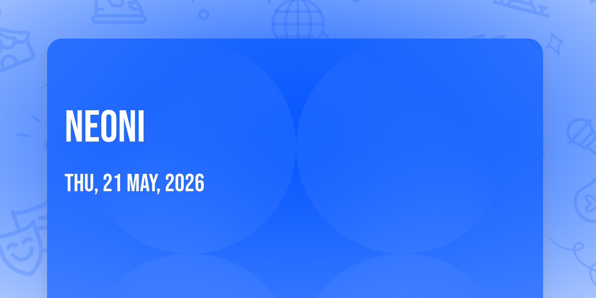 ✨ Enter a world of endless possibilities at Neoni, where every moment tells a story! 🏛️ The stunning Cornerstone - CA in vibrant Berkeley, CA transforms into a realm of wonder on May 21st, 2026 at 04:00 PM. 🌟 They have crafted an experience that goes beyond the ordinary, combining elements of surprise, delight, and pure entertainment. Every detail has been thoughtfully considered to ensure your journey with us is nothing short of extraordinary. 🎯 Join fellow adventure seekers and memory makers in this celebration of imagination and innovation. 🎊 Reserve your spot today and be part of something truly special!http://maps.seatics.com/GeneralAdmissionEvent_VIP-GA_2021-02-02_2021-02-02_0918_11012023_112550_SVGC_tn.gif