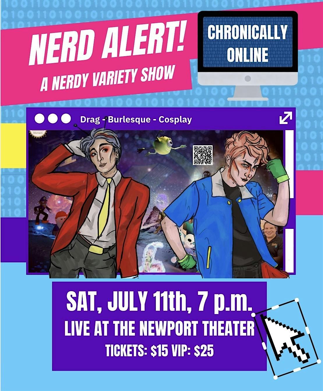 “Nerd Alert!” is a cosplay-focused drag and burlesque show which blends the curated cast of a traditional show with the accessibility of an open stage! This time cosplay is the name of the game! Our amazing cast will bring a variety of performances to the Newport. Our goal is to promote inclusion and accessibility for everyone who loves to nerd out!